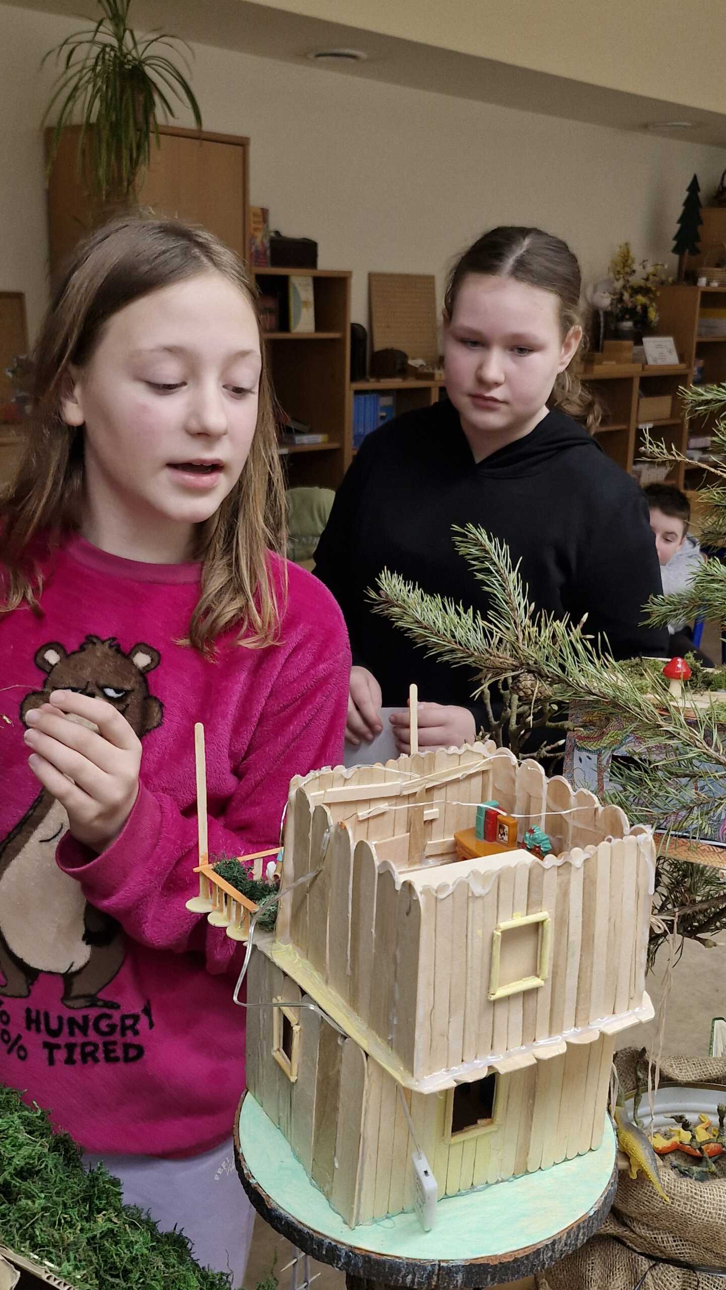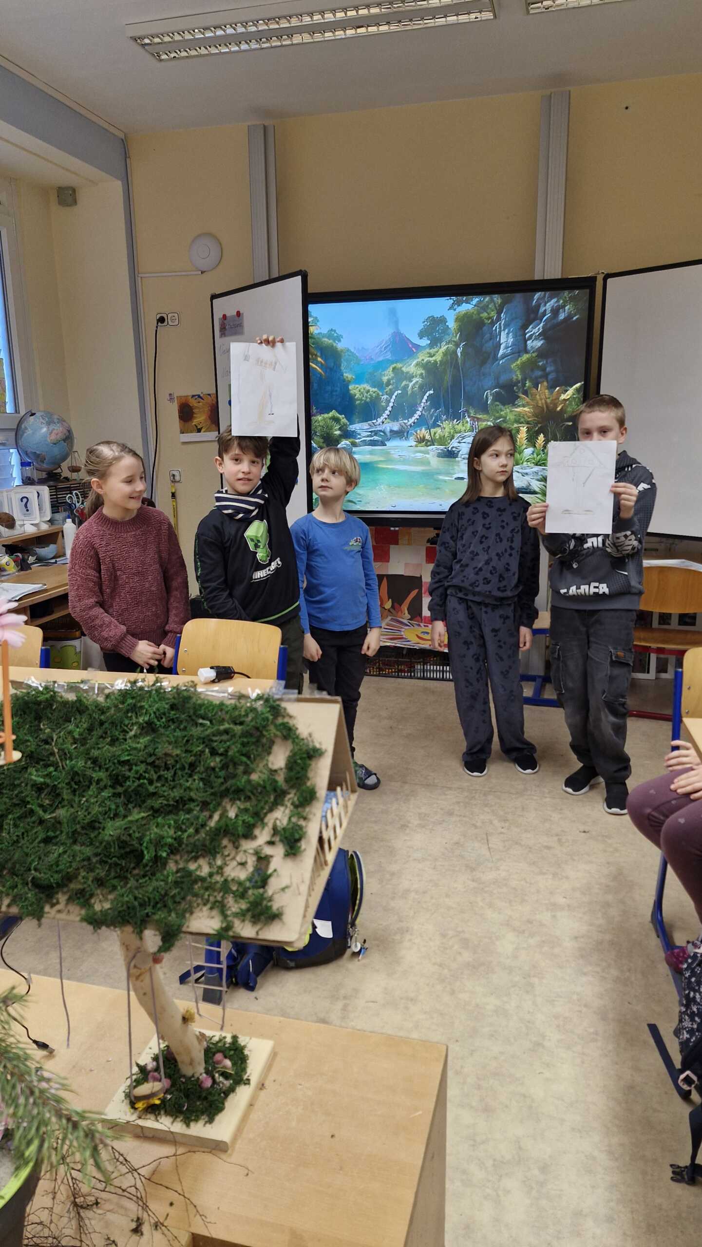 Ausgangspunkt war das Buch „Das magische Baumhaus – Im Tal der Dinosaurier“. Die Geschichte hat die Kinder so begeistert, dass sie nicht nur gelesen, sondern selbst fantastische Baumhäuser entworfen und gebaut haben.